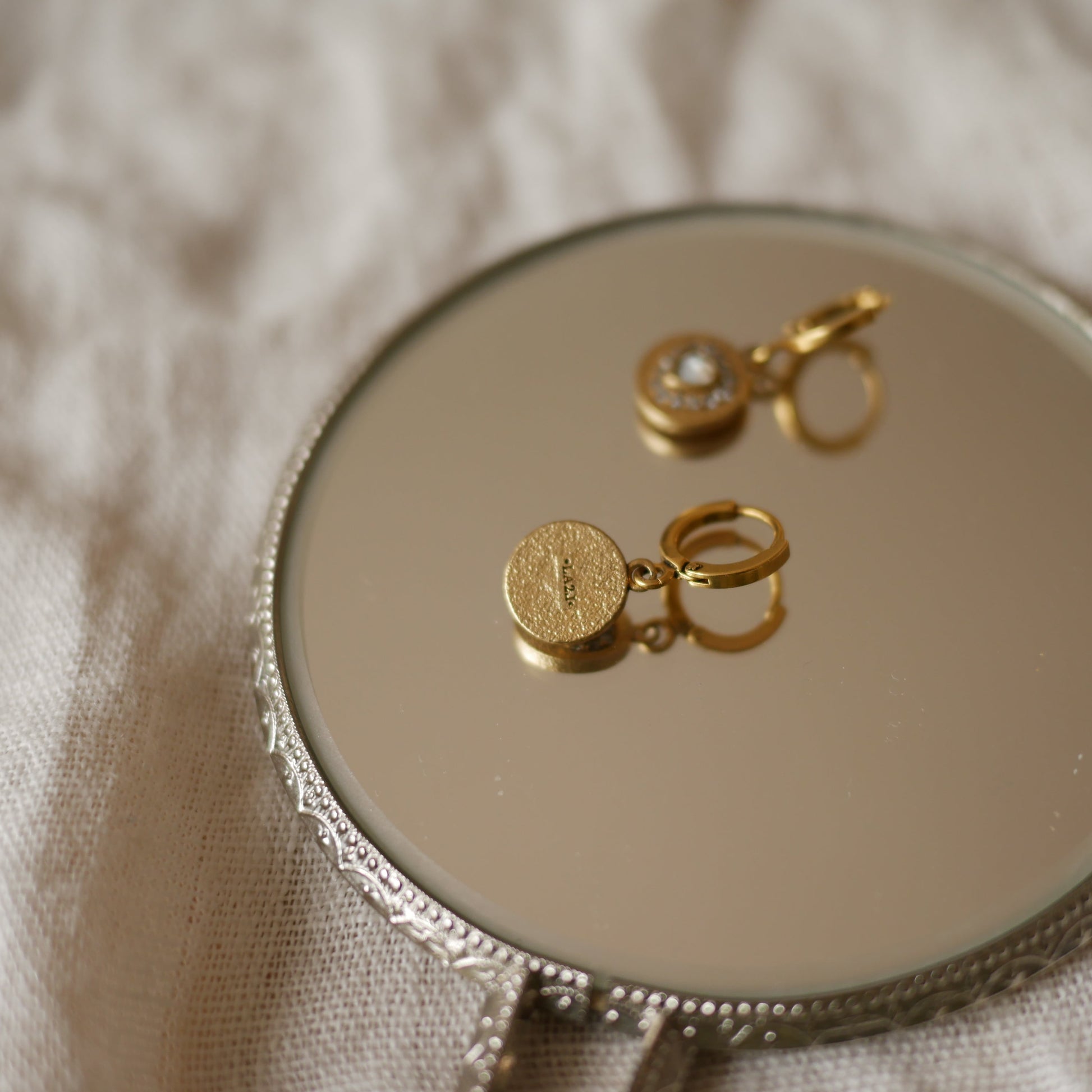 材質: 24 Gold-plated 黃銅鍍24k金/ Mother of pearl 白母貝 / Swarovski crystal 施華洛世奇水鑽
