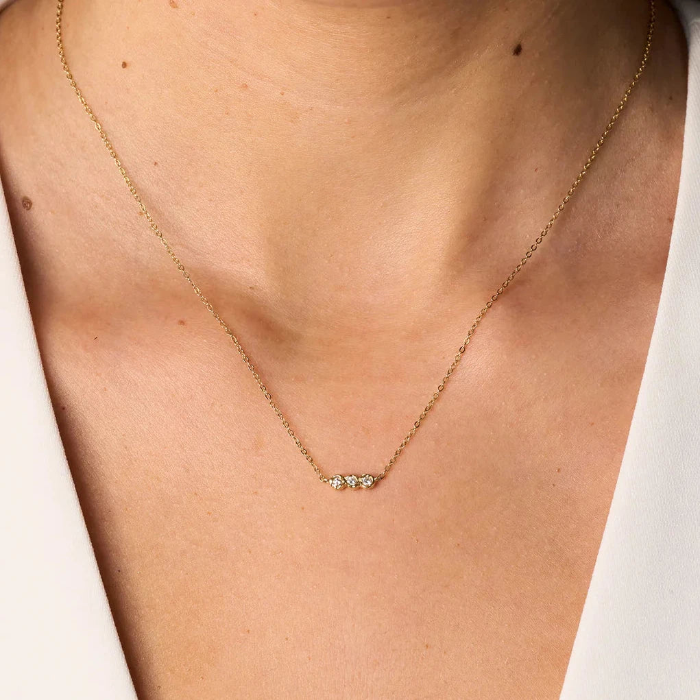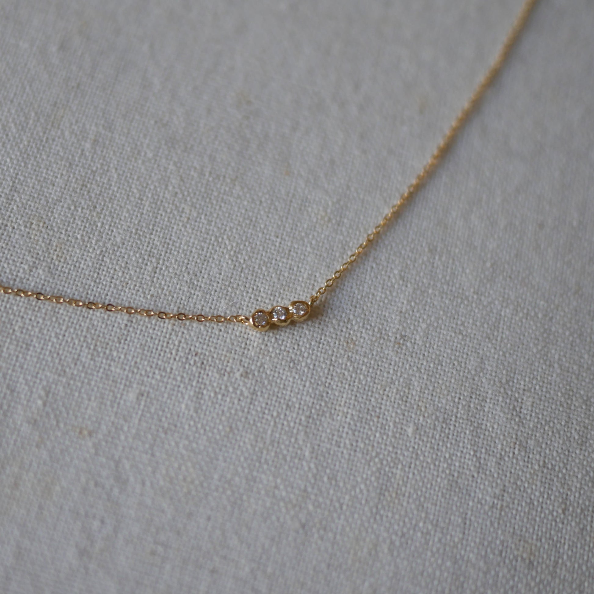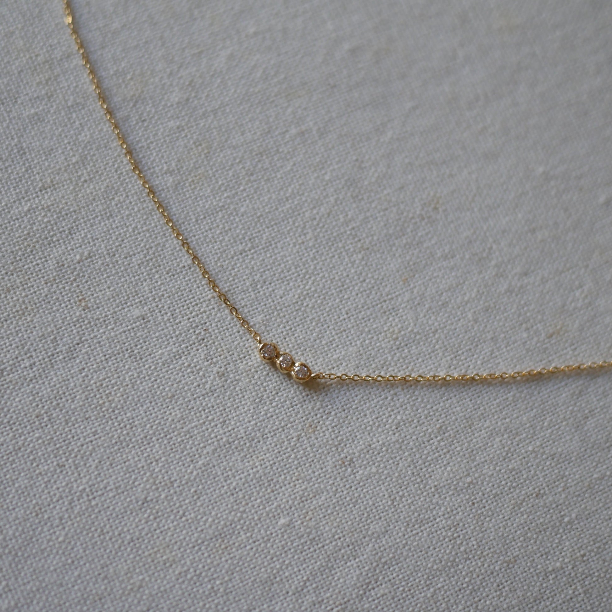 三顆培育鑽石並排鑲嵌於不規則金色包鑲中