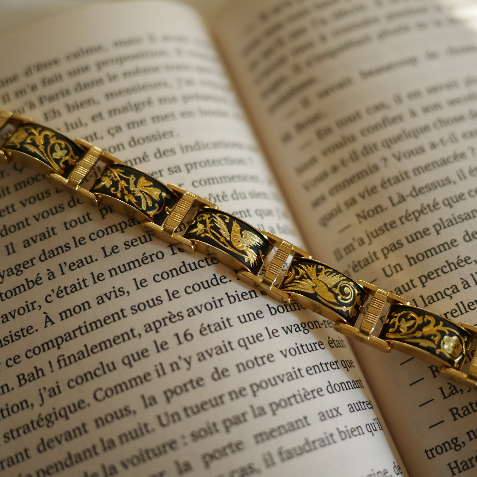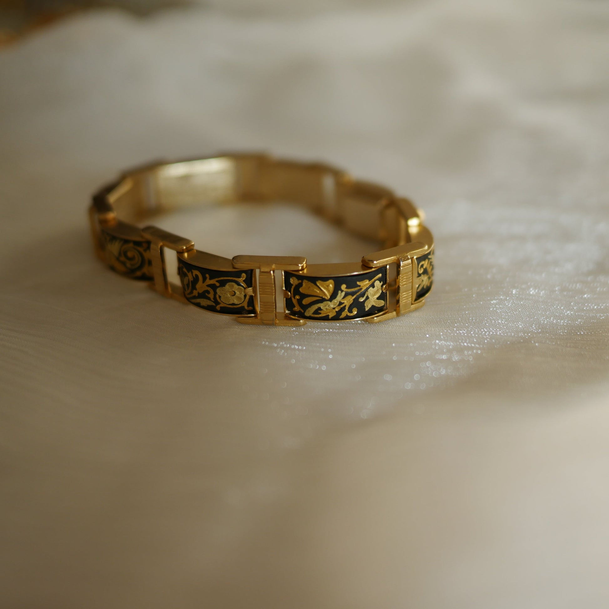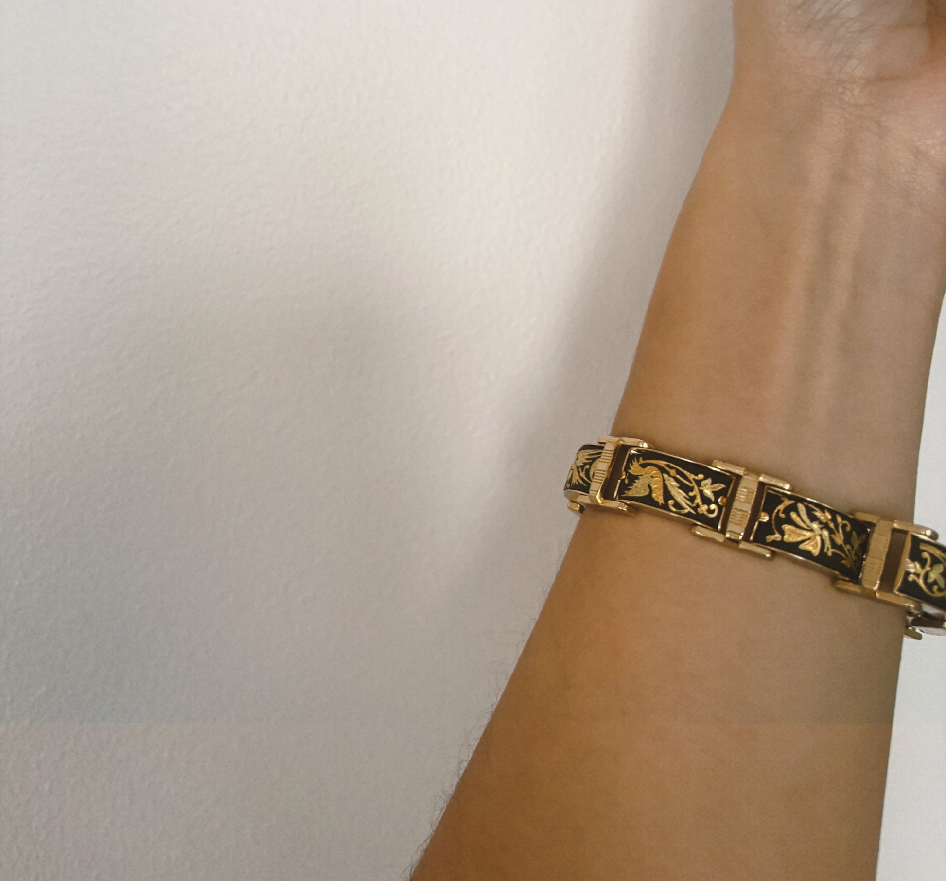 這是一款西班牙托萊多(Toledo, Spain)風格的 大馬士革雕花(Damascene)手鍊