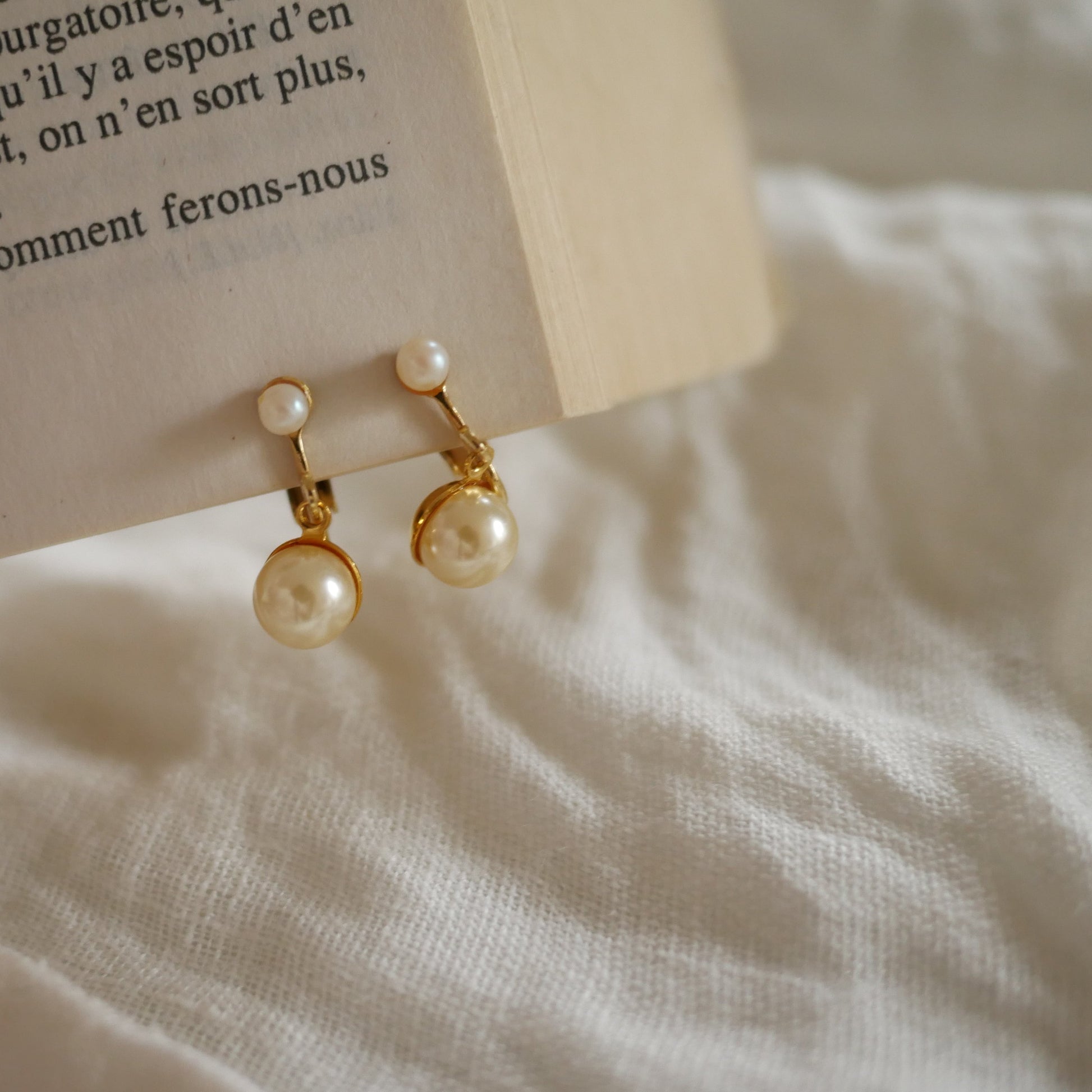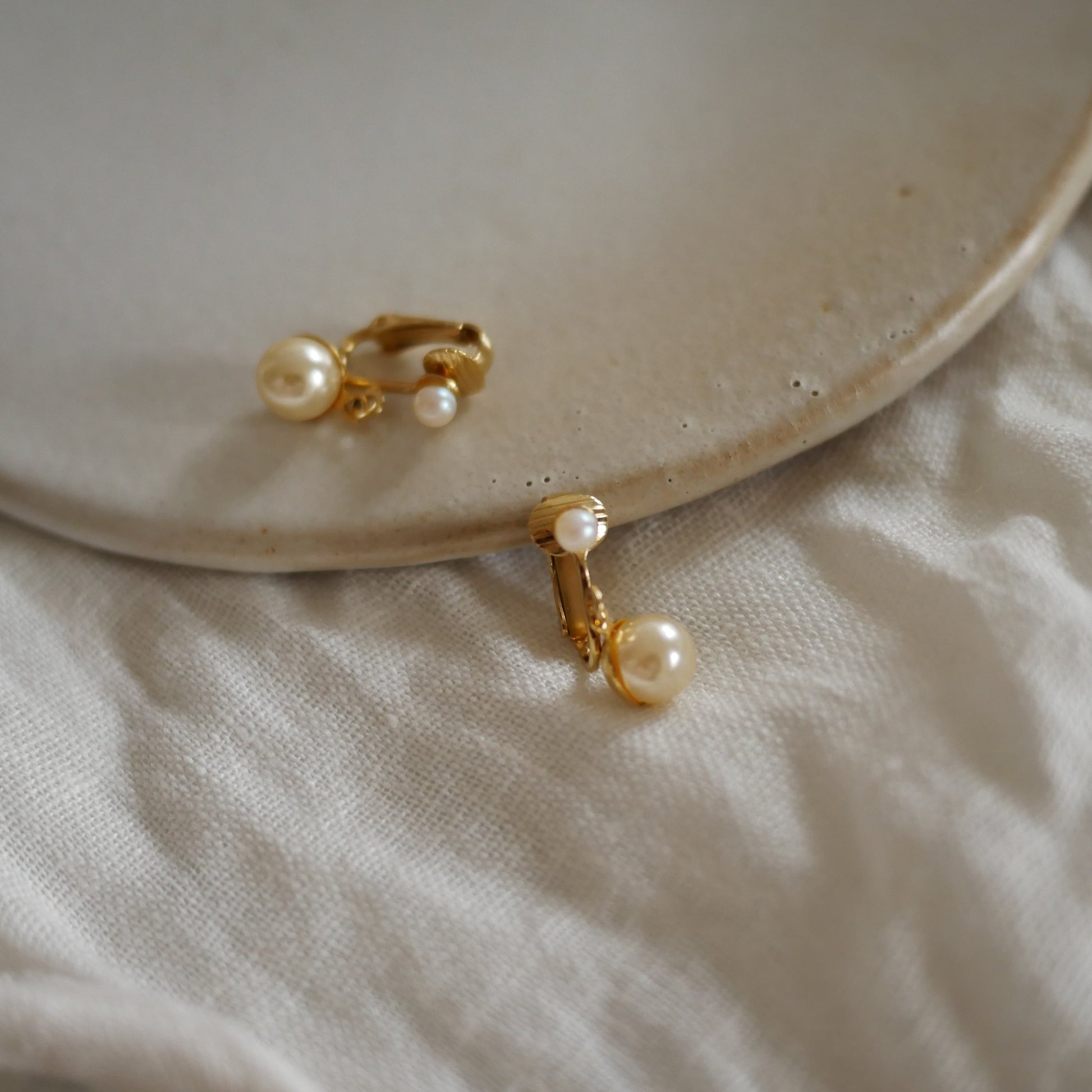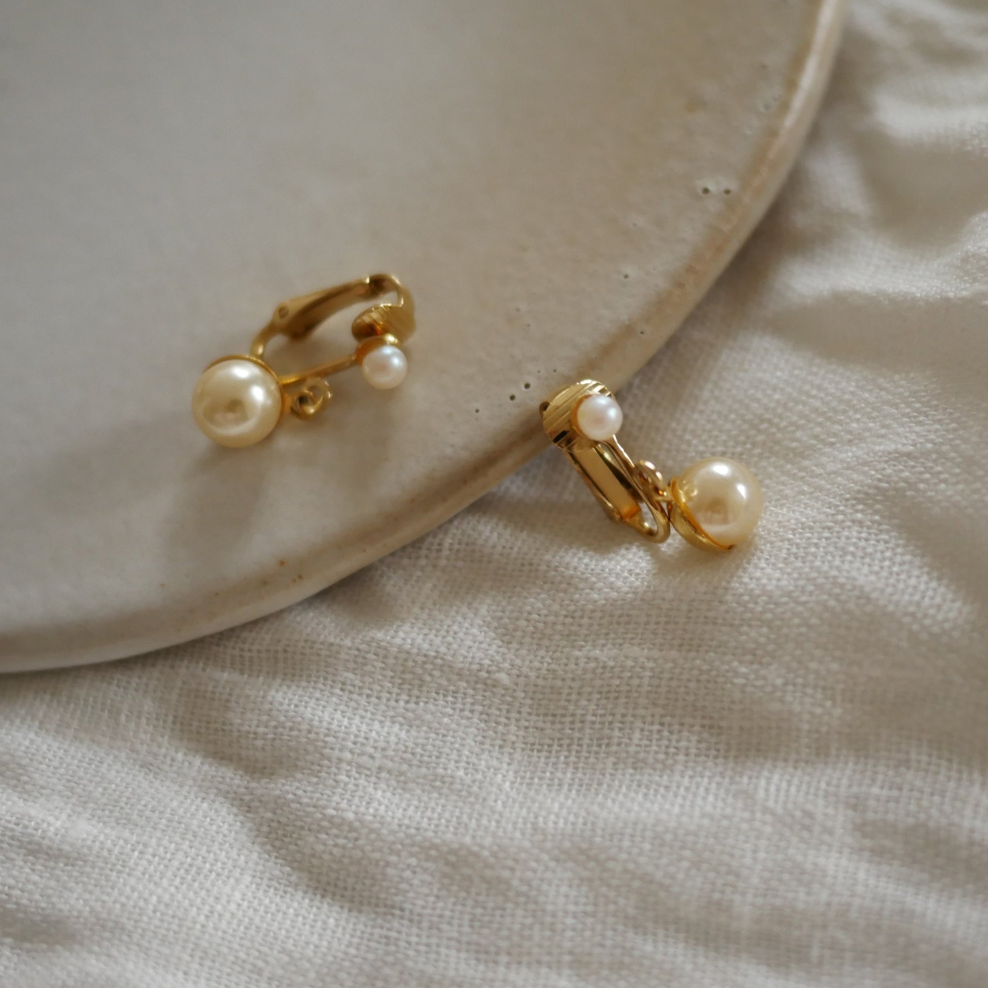 137 Vintage古董夾式珍珠耳環