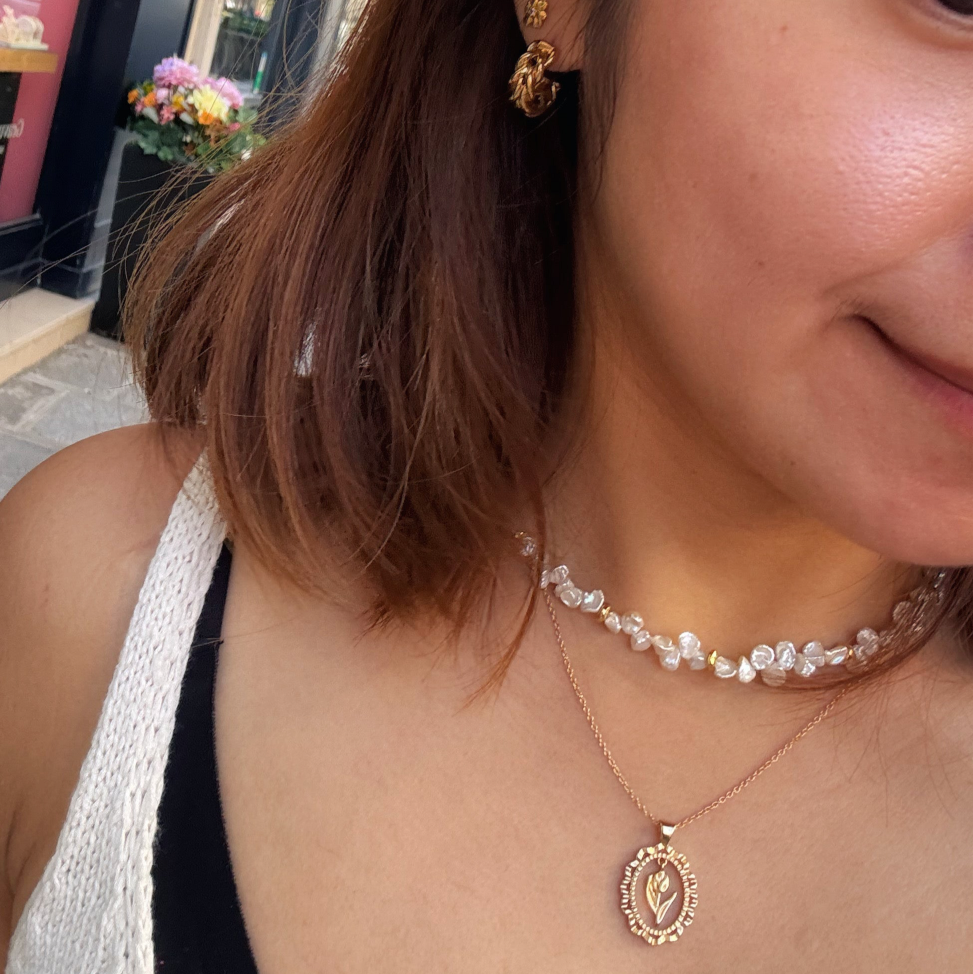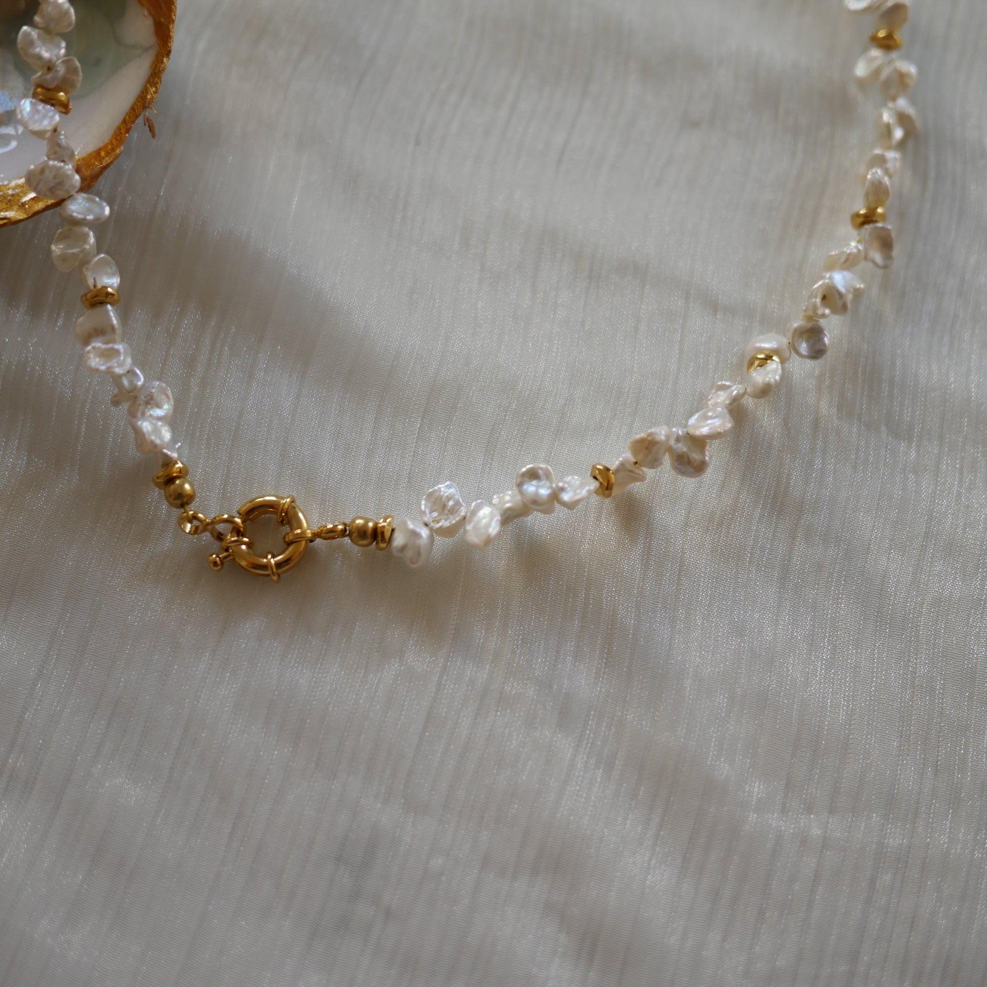 這款不規則珍珠項鍊以天然淡水珍珠為主體