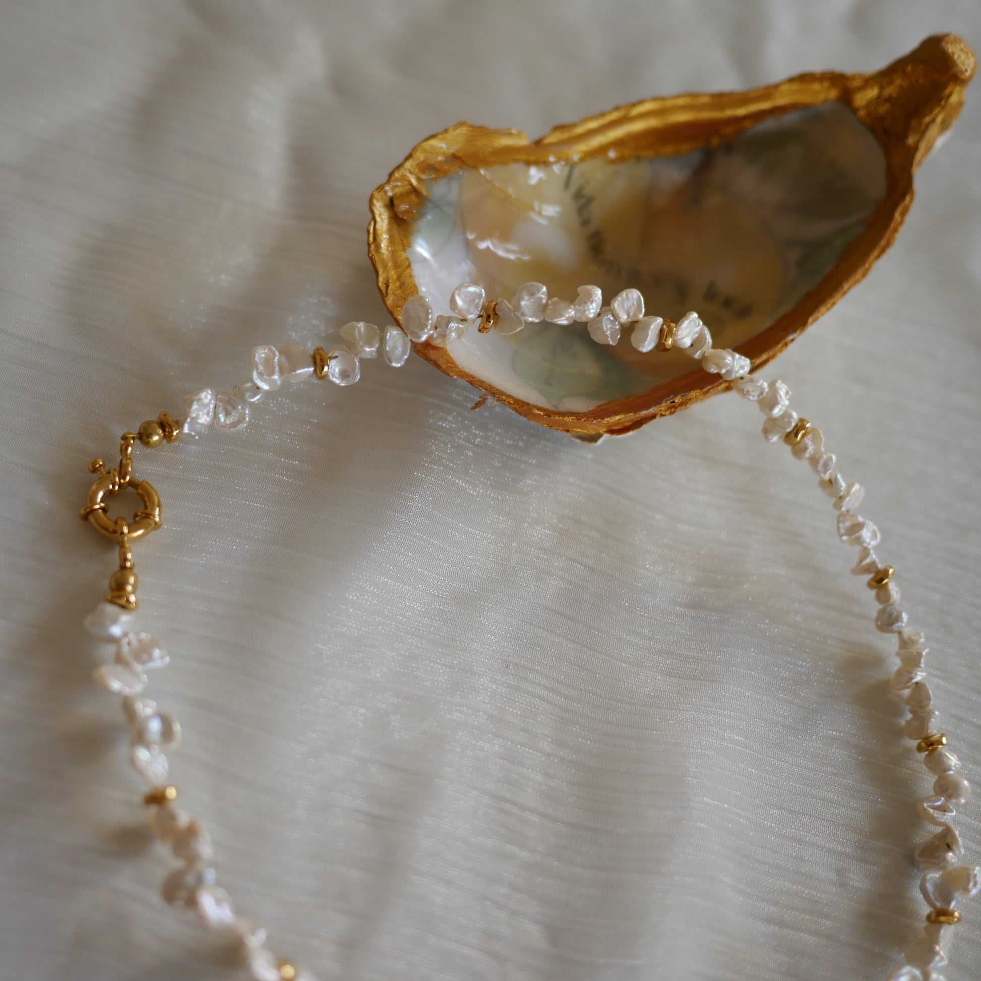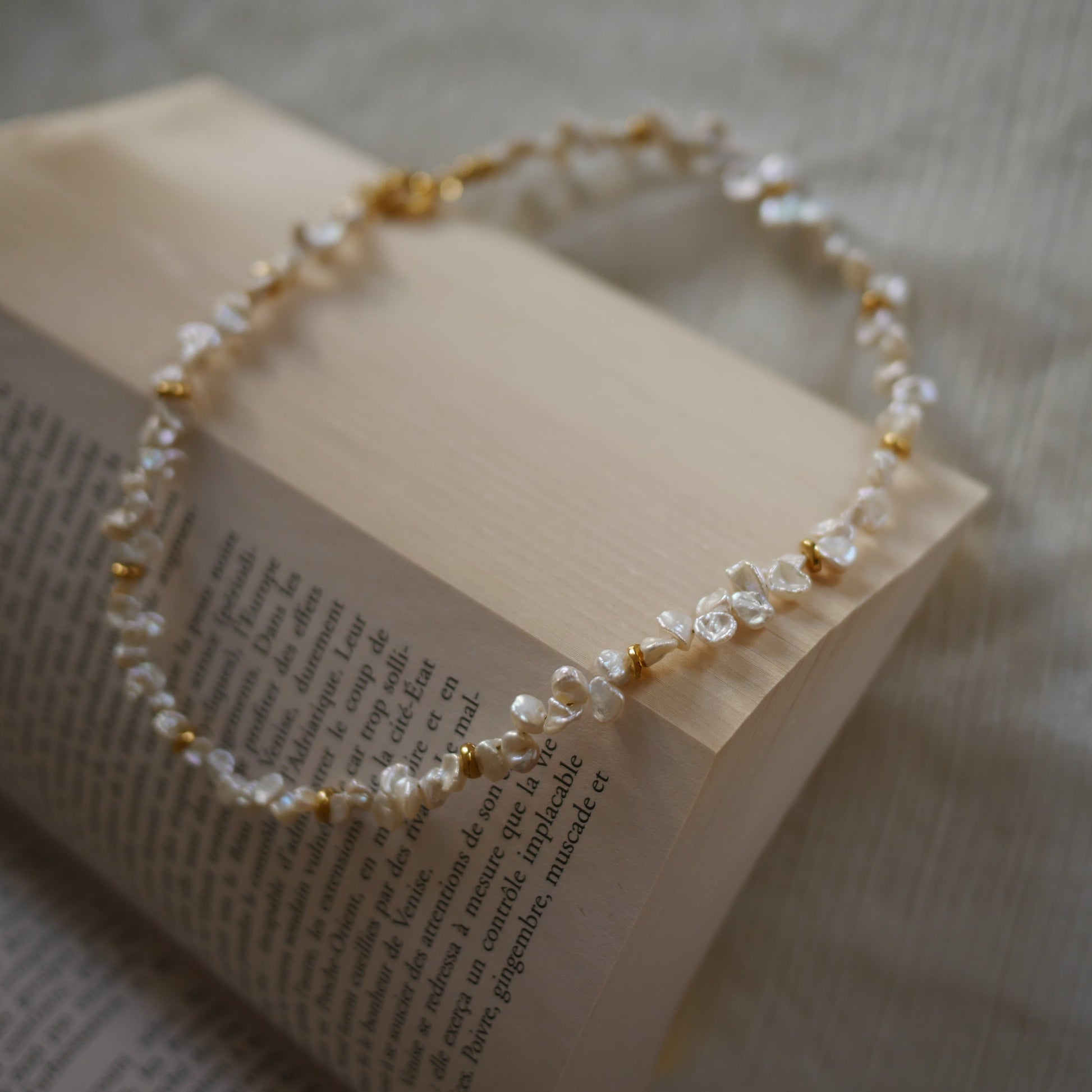 珍珠形狀各異穿插金色小珠點綴
