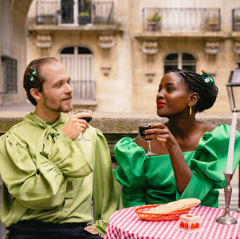 這款酒瓶造型髮抓夾以俏皮的方式演繹法式優雅