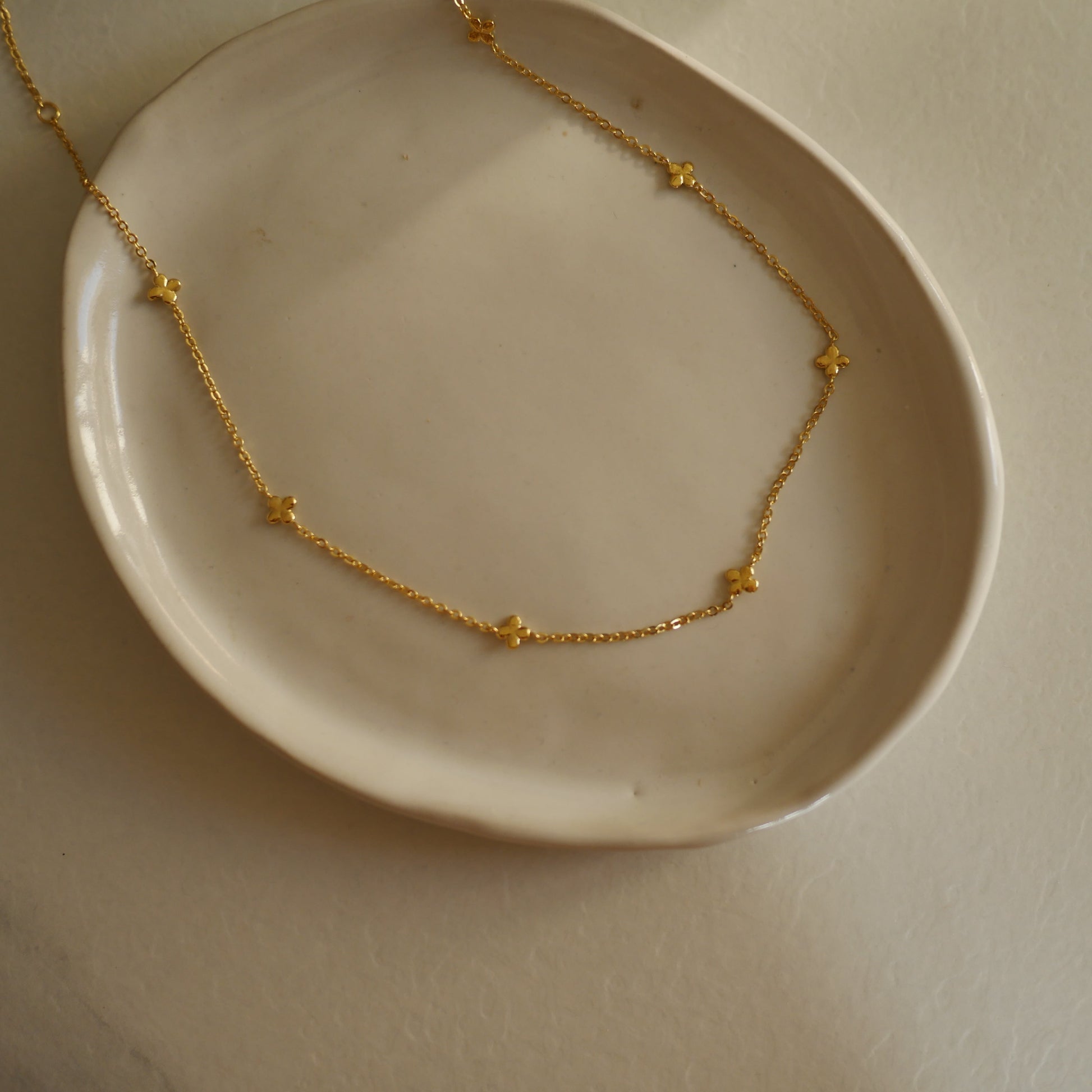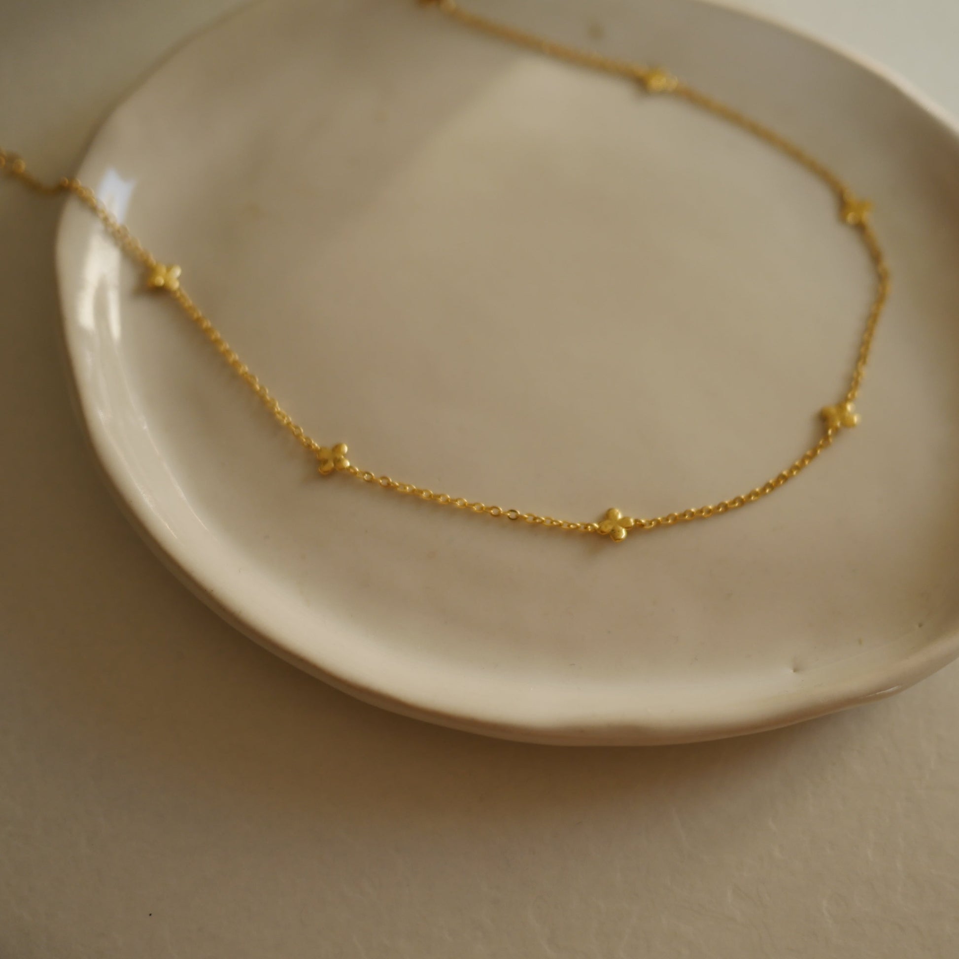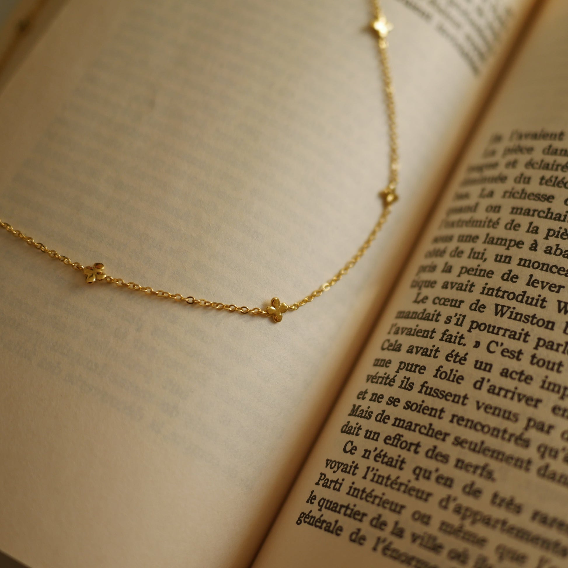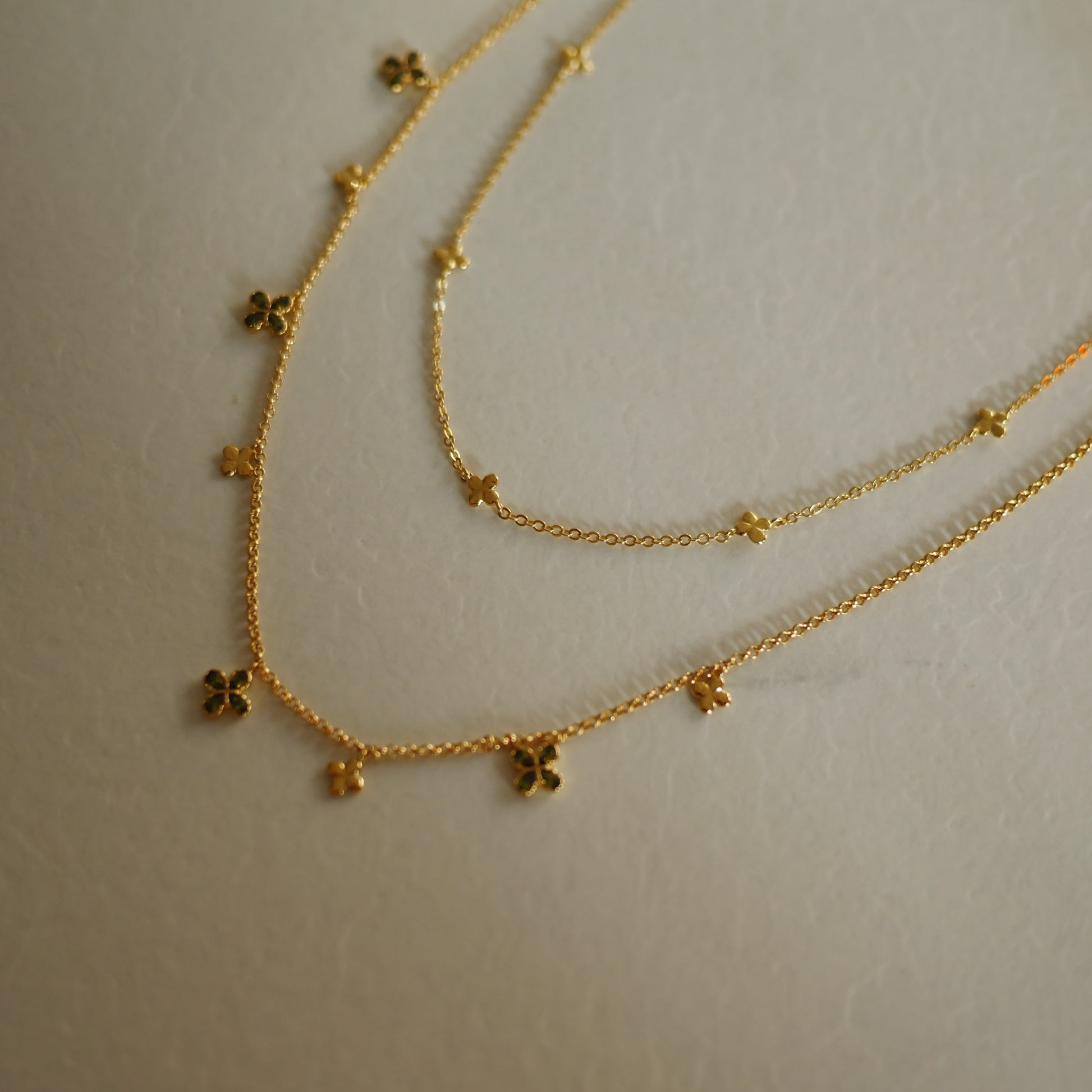 細鏈頸鍊上點綴著小巧金色四葉幸運草