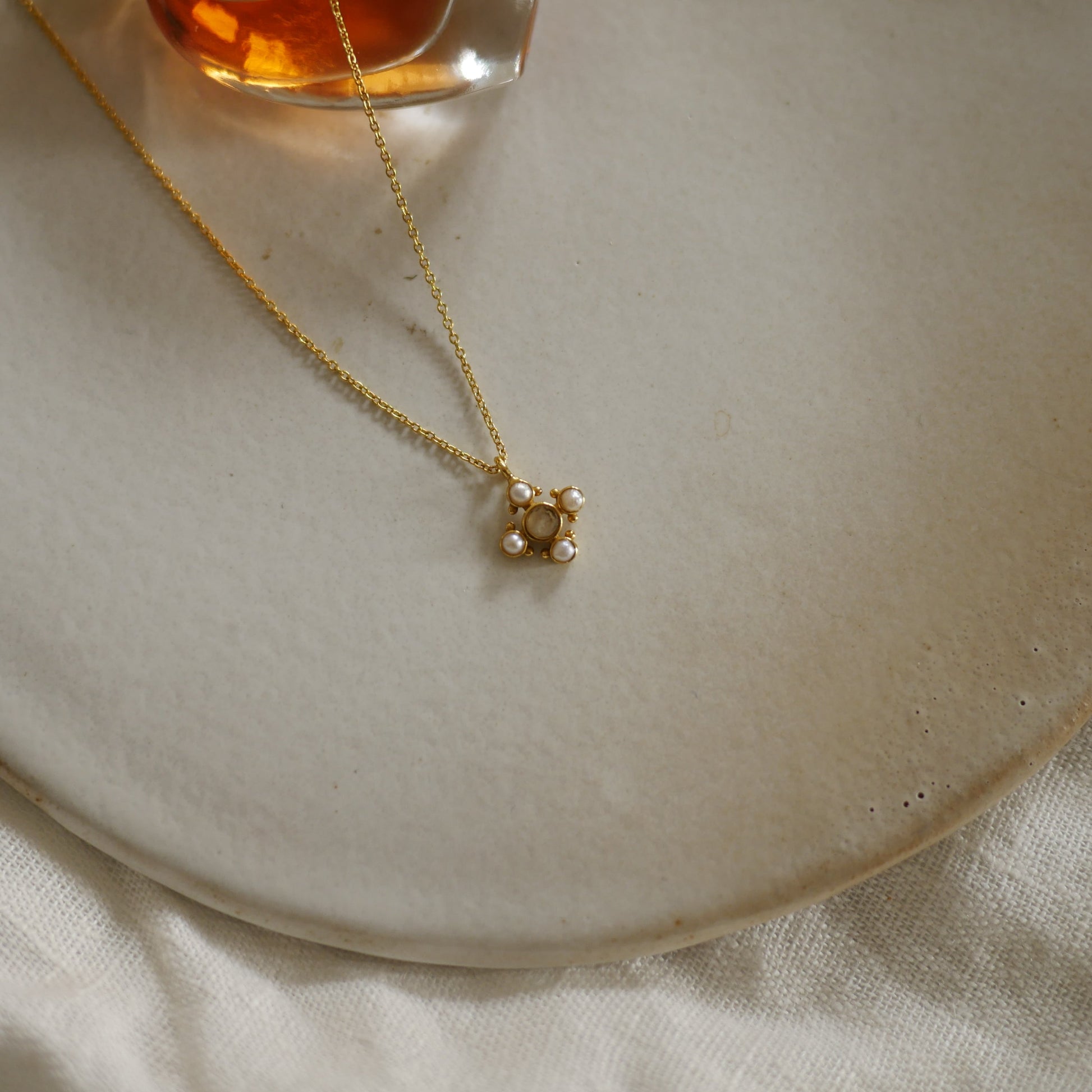 材質: 18K Gold-plated on sterling silver 925純銀鍍18k金 / Cultured pearl 養殖珍珠/ Moonstone 月光石