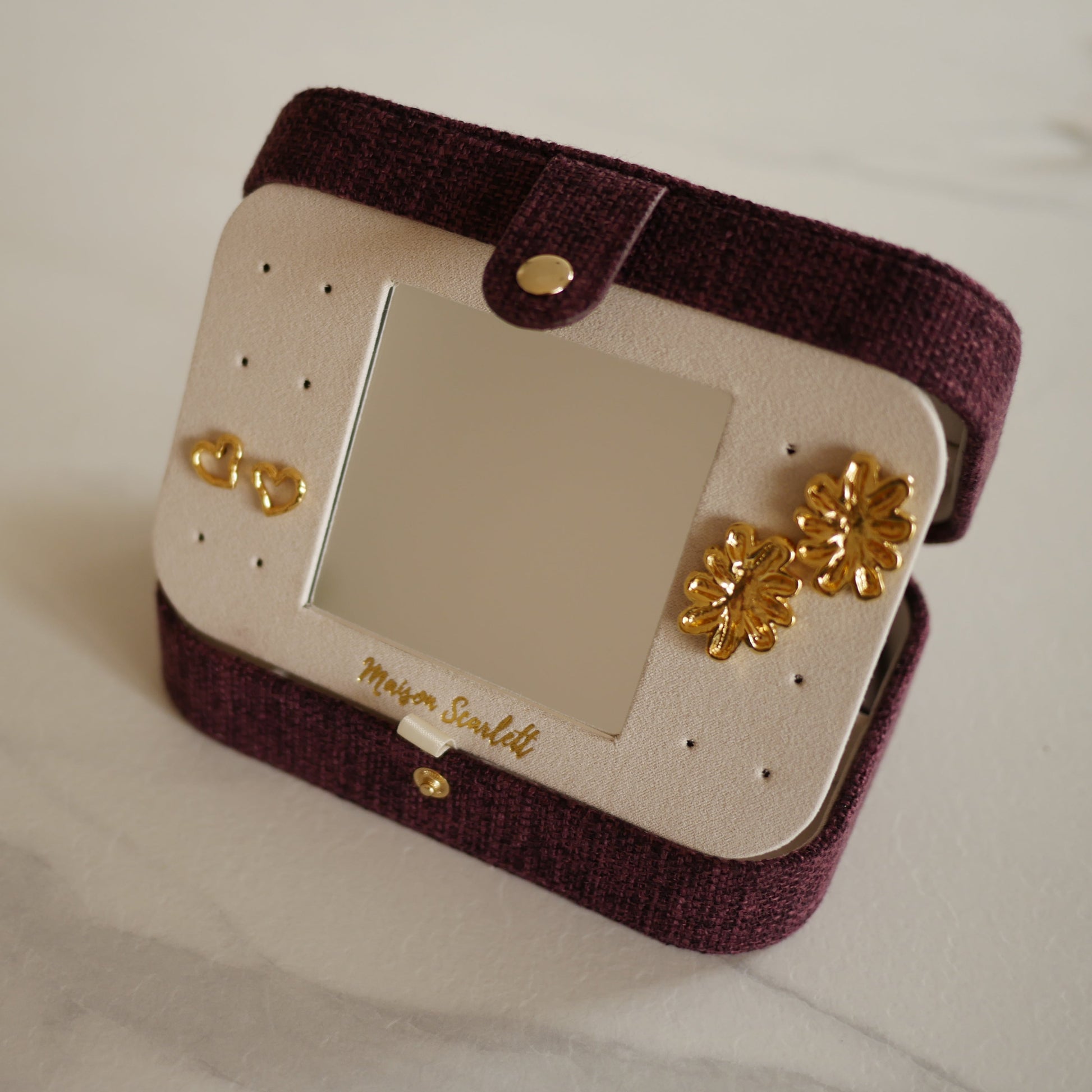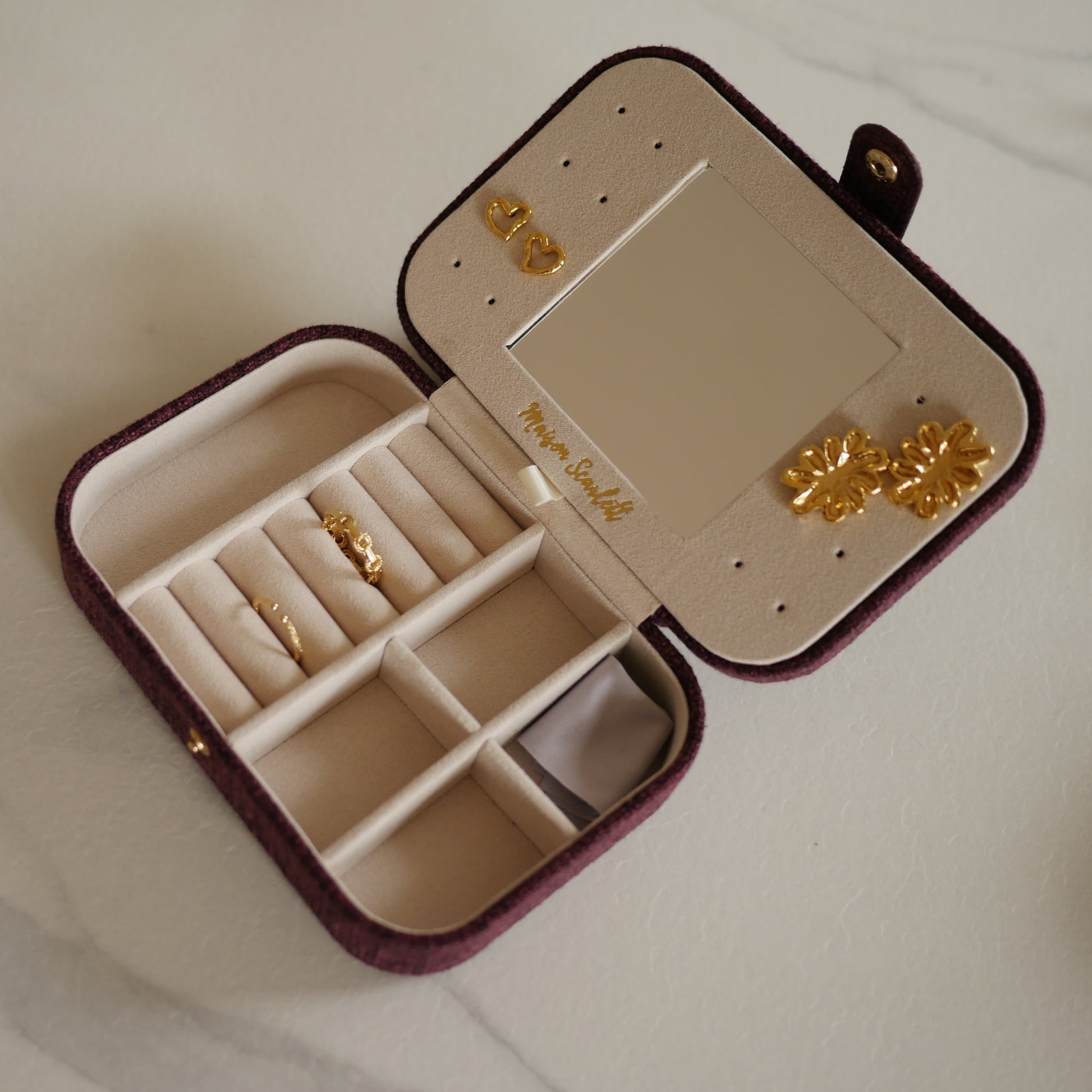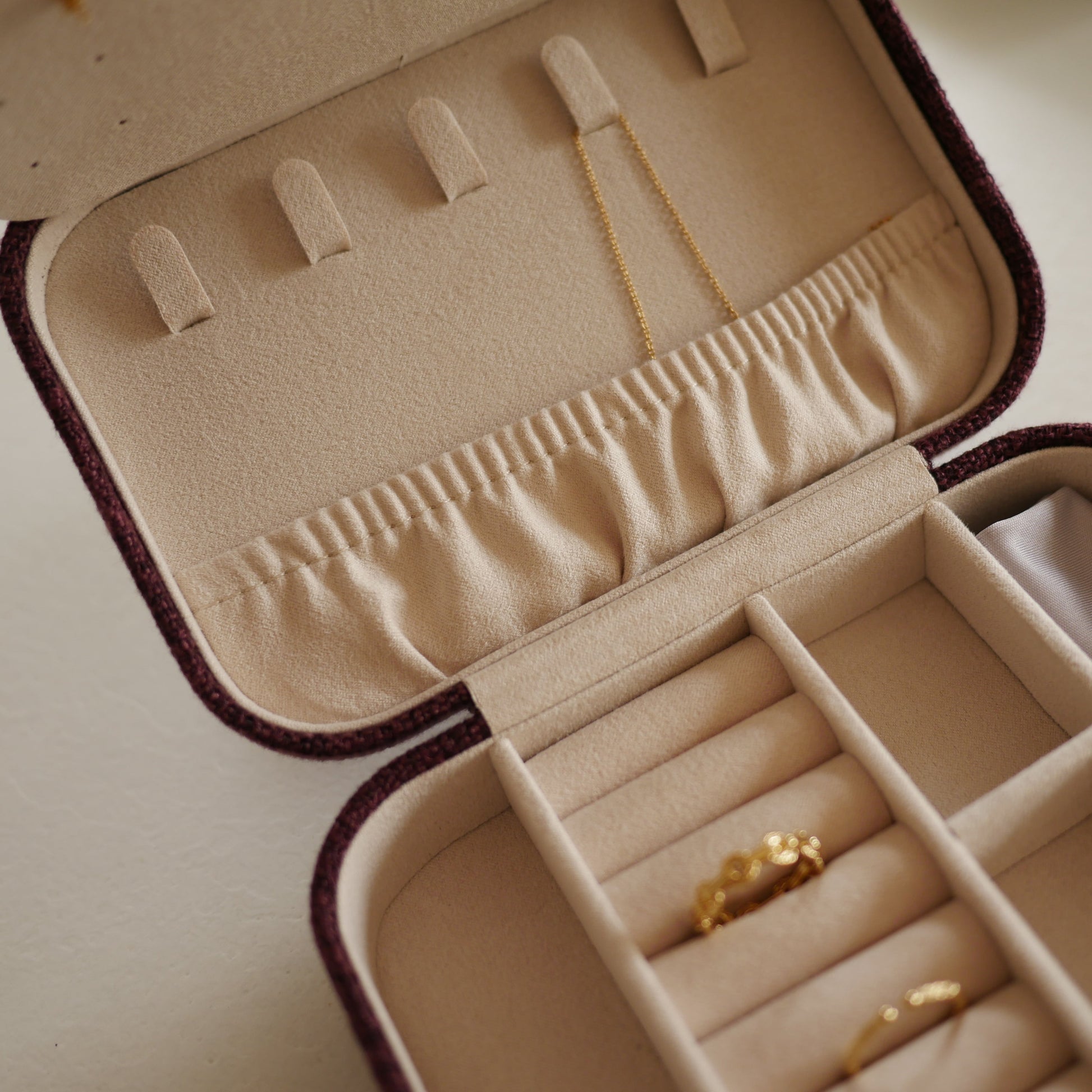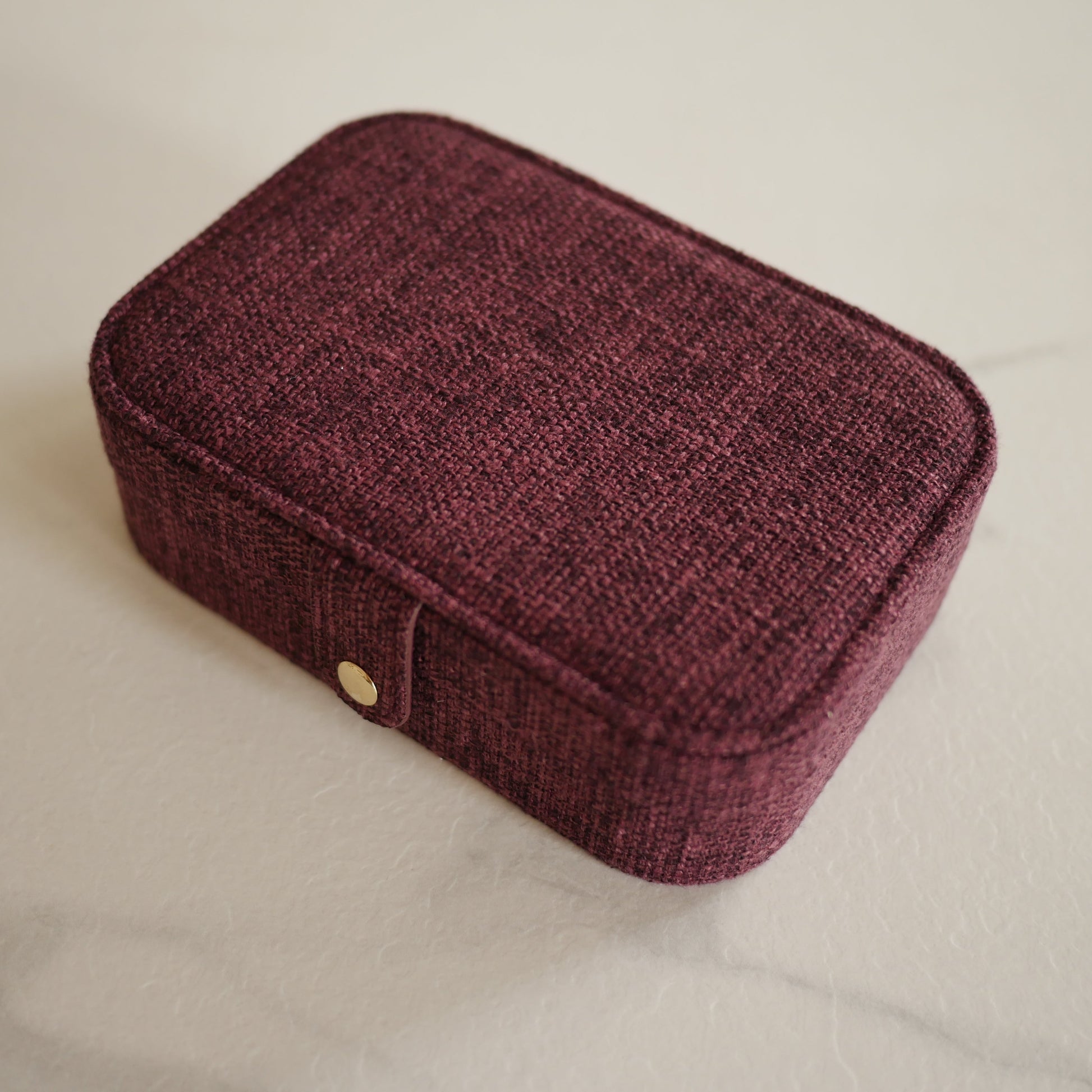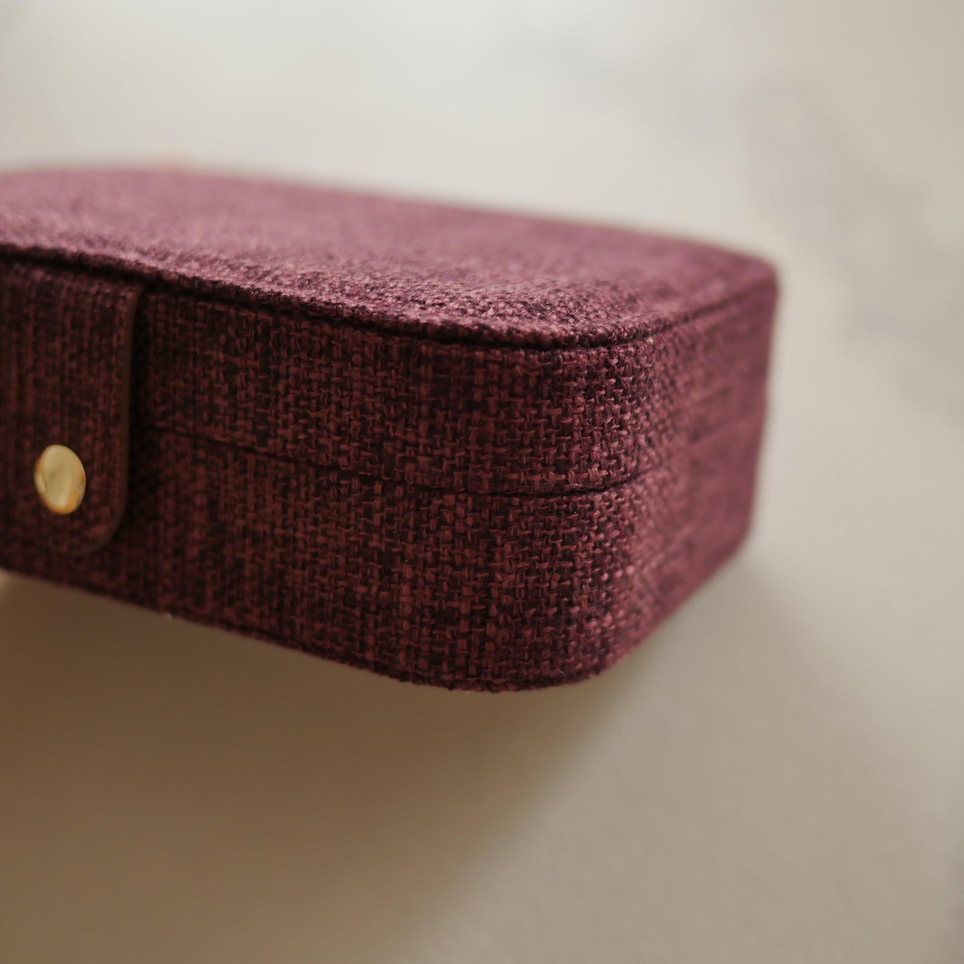 Prune首飾盒採用柔和的酒紅色亞麻布料包覆