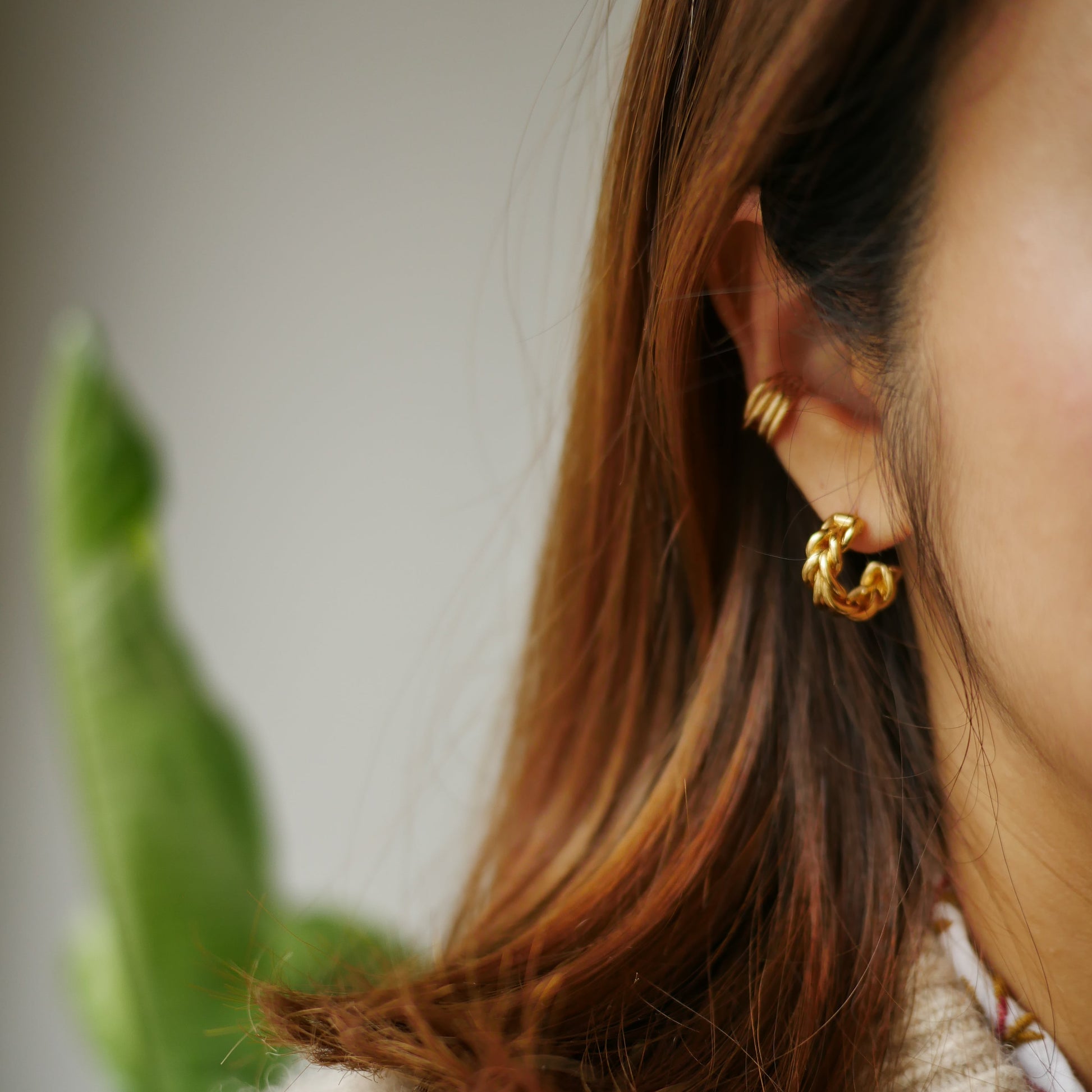 Romane線條交錯耳骨夾