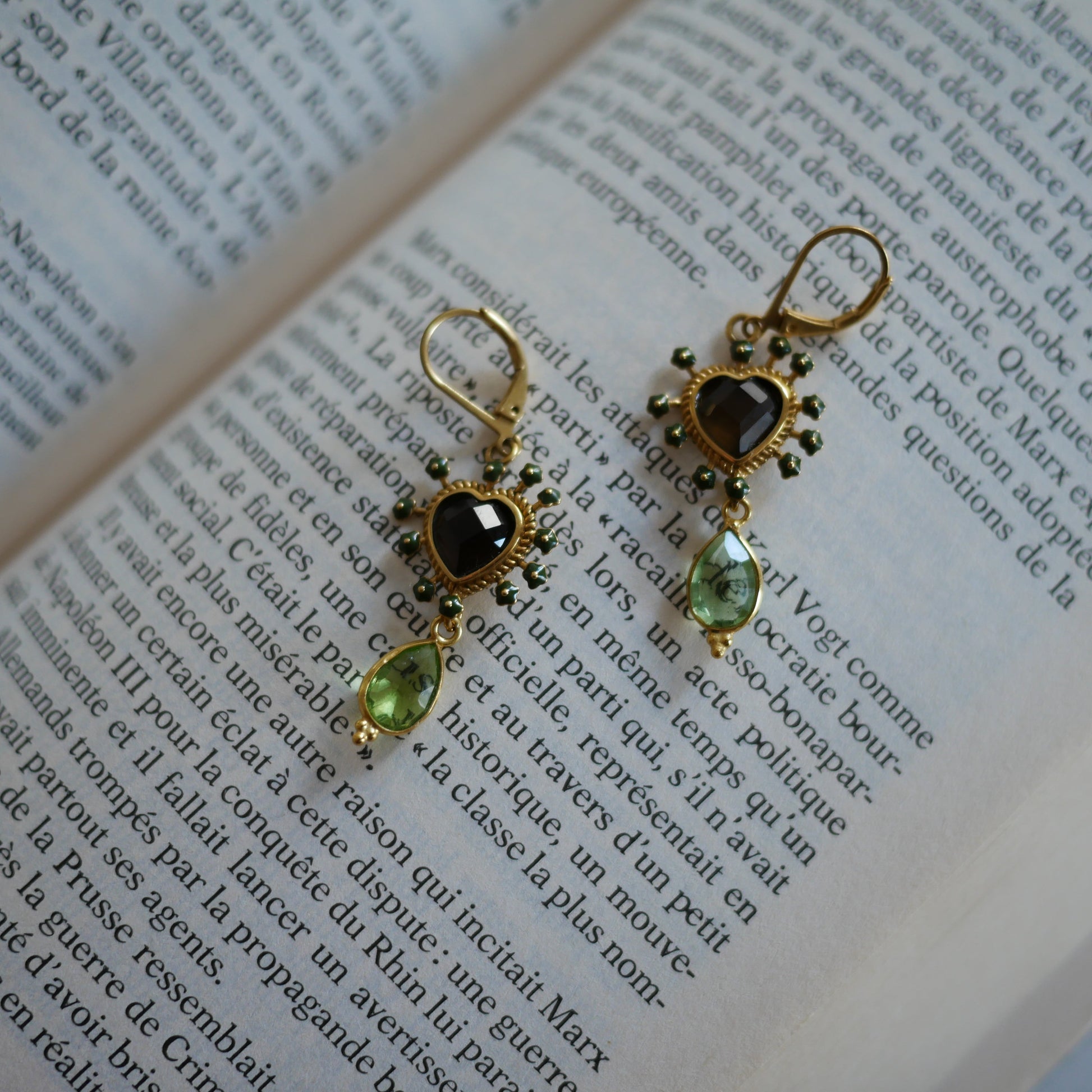 Sacha heart ex voto愛心半寶石垂墜耳環